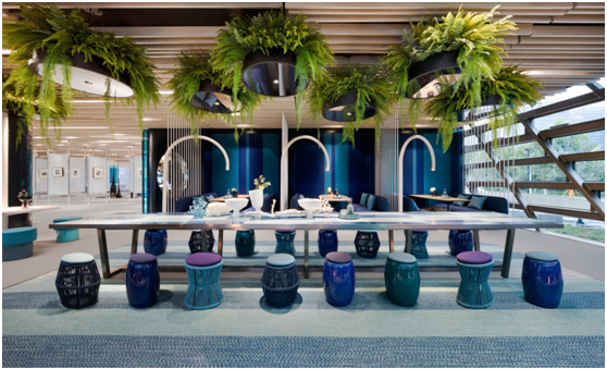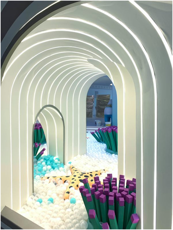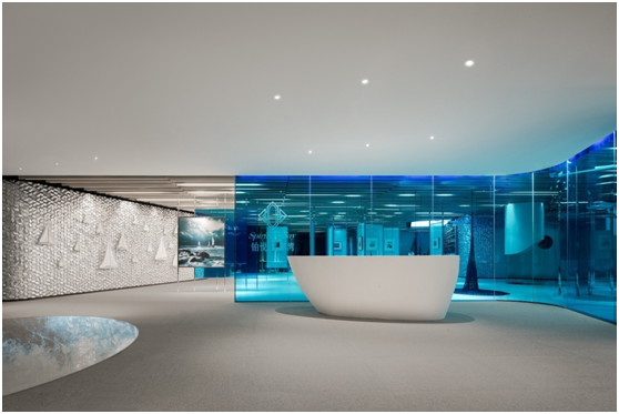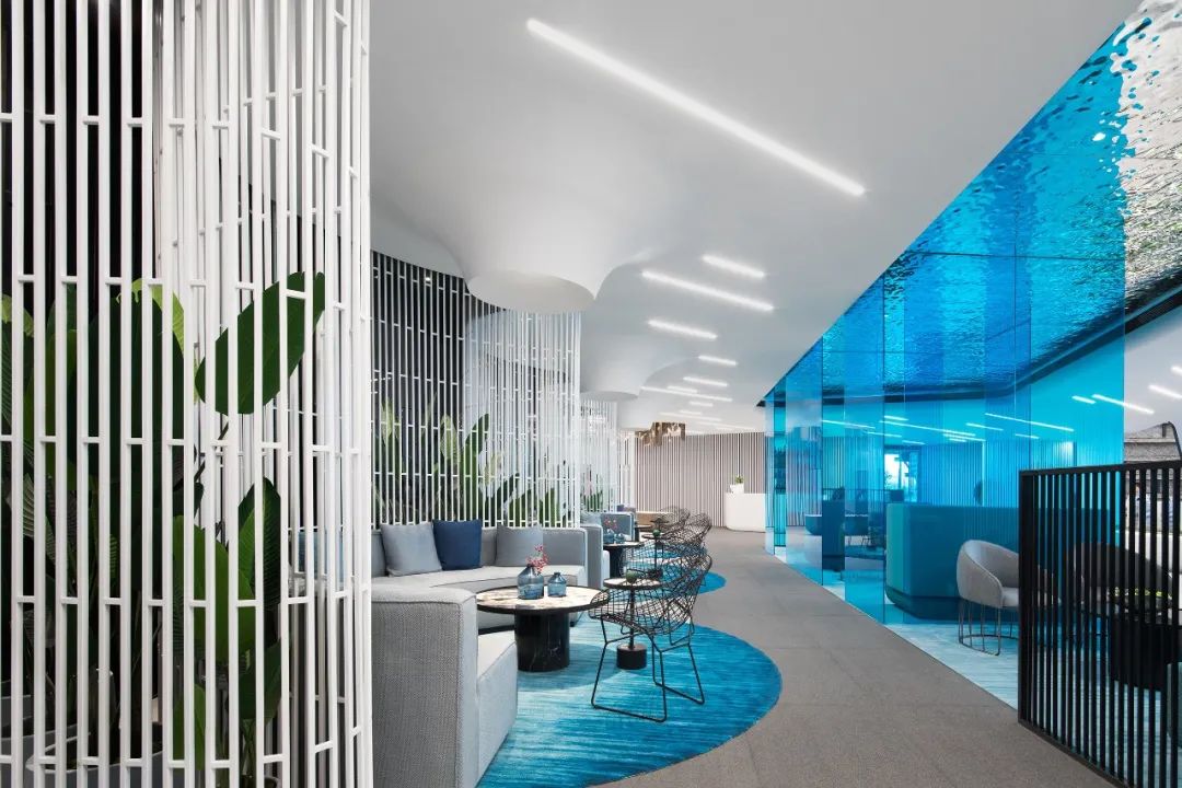 整体设计运用了不同层次的蓝色与透明色来突出海洋生活方式体验,具有通透感的玻璃隔断,增加了趣味性以及探索性,穿梭于整个空间时,解锁每个角落带来的惊喜。