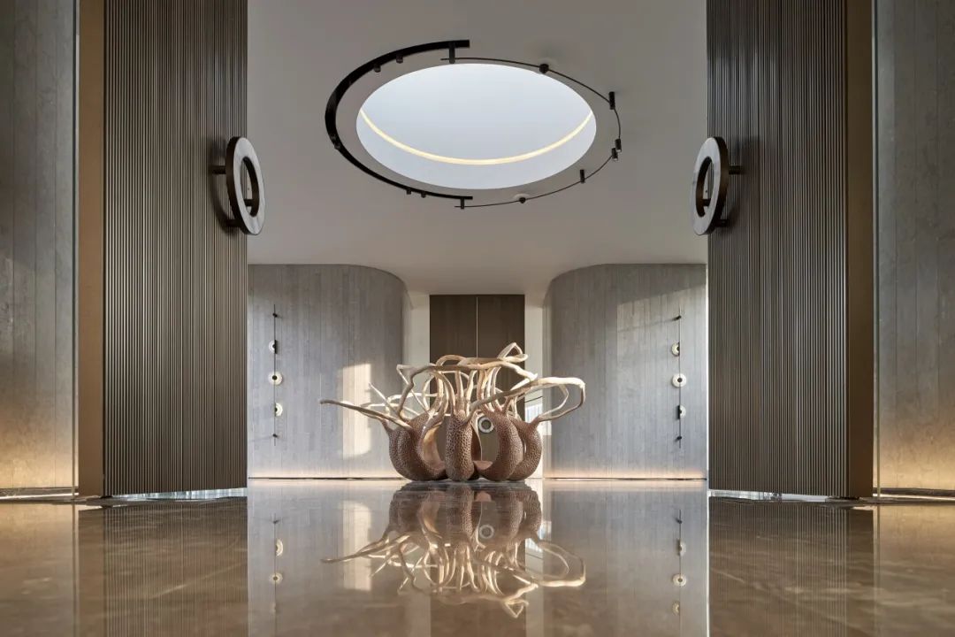 在室内设计上,铂悦·灵犀湾以丰富的艺术想象升华自然之美。家具、艺术品极具现代感的曲线与造型,抽象演绎山林海洋的自然景物,营造出“馆在山海中,馆内藏山海”的意境。