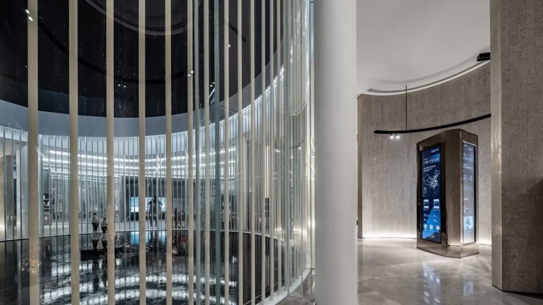 门厅作为入户的门面,挑高设计呈现出天门中断楚江开的磅礡气势。我们透过圆弧壁面引导动线,柳暗花明后进入充满开放感的室内空间,创造豁然开朗的视觉效果。