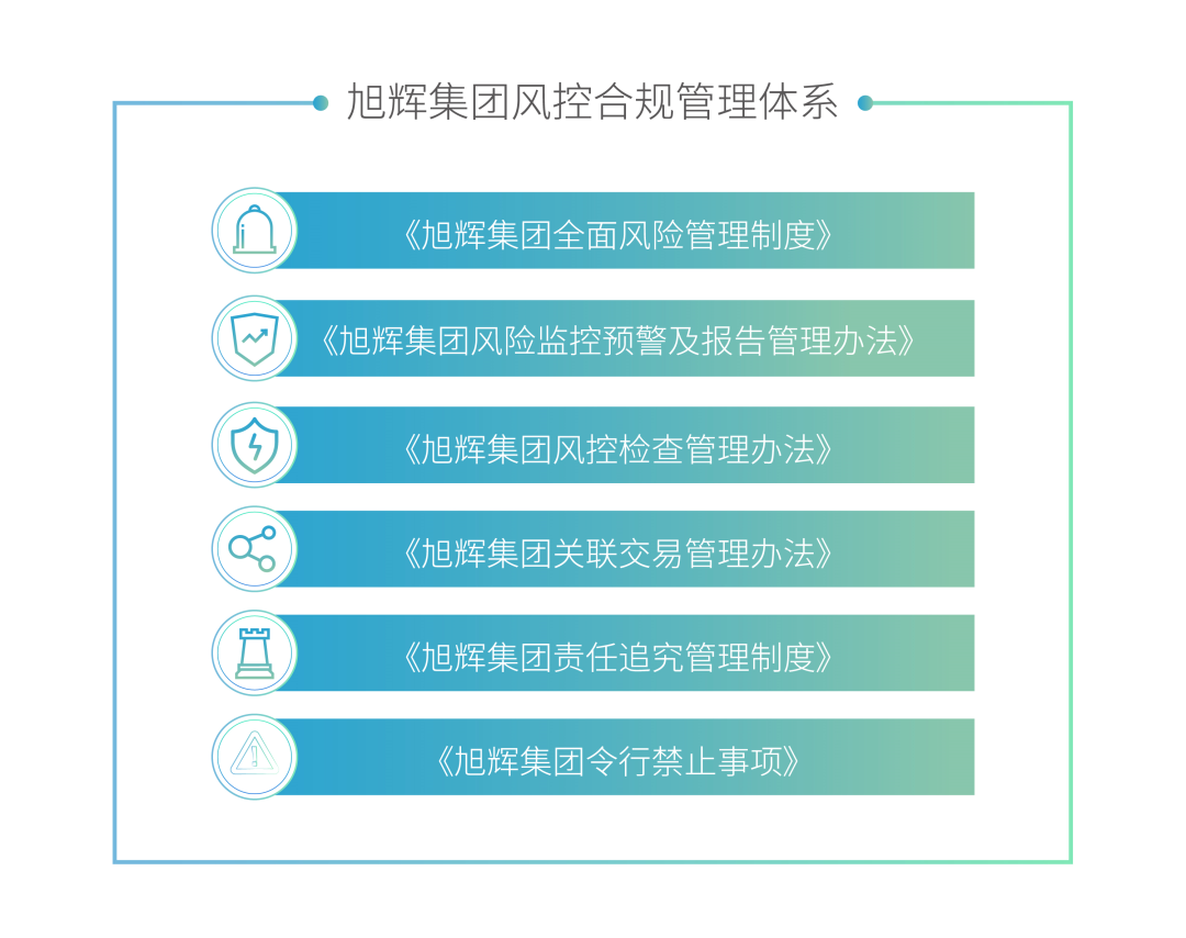 法务和风控体系建设是旭辉合规管理体系的重要组成部分,通过多年的制度和组织建设,旭辉已逐步构筑起完善的制度管理体系,助力诚信合规经营。