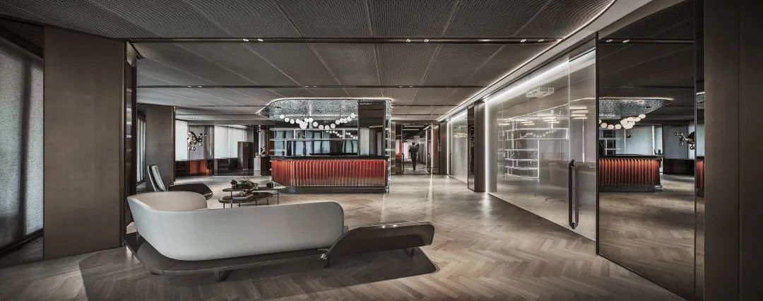 恒基·旭辉天地的室内风格极大地融入了“工业感”和“未来感”的碰撞,突出材料的质感与戏剧性,通过空间互动与通电玻璃等手法的运用,增添办公空间的功能性、趣味性,从而打破传统办公形象,为空间注入更多的功能融合可能性。