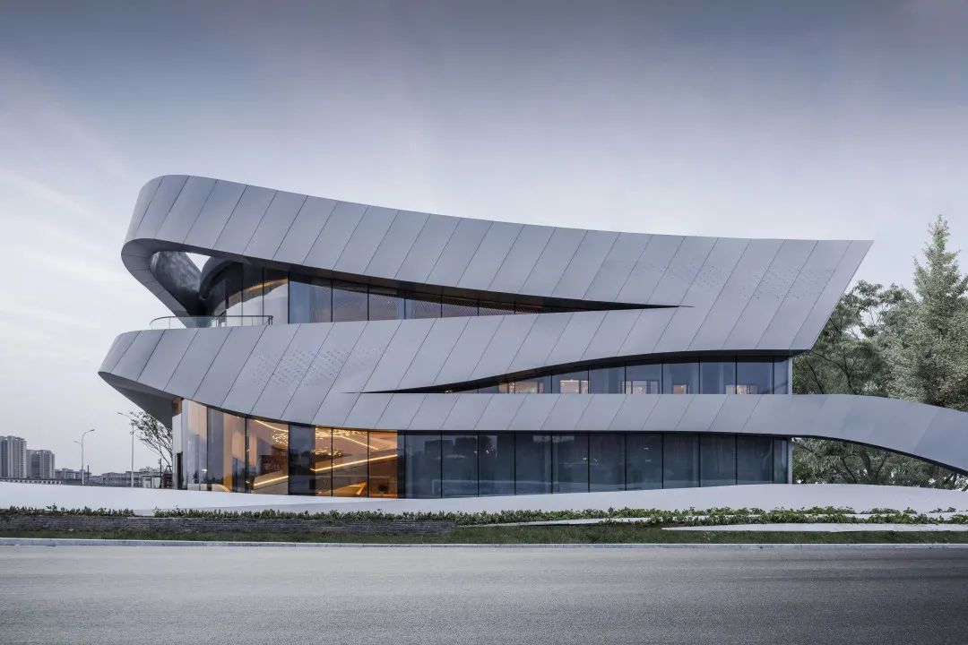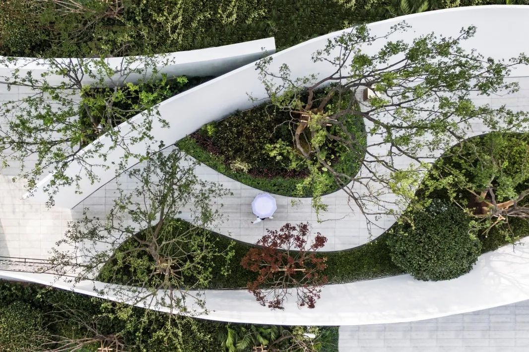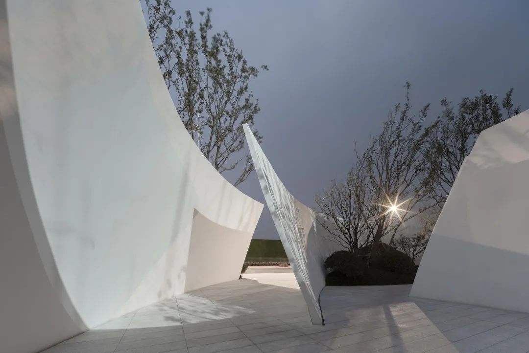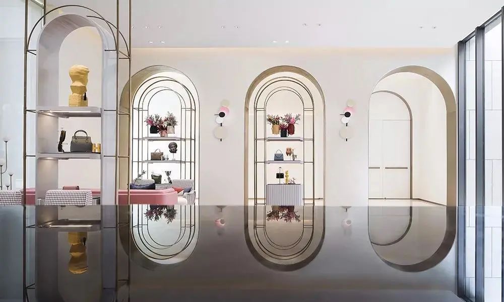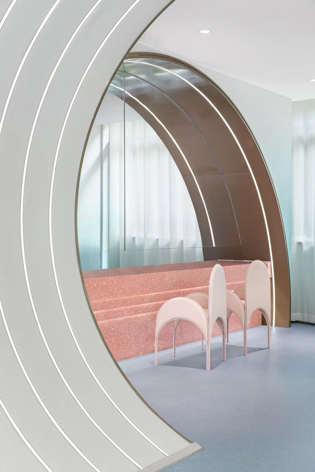如果说雁归来院是以“物我相融”为设计理念,那么旭辉·和风花园便是基于苏州古典园林中另一大设计理念——“曲径通幽”进行现代演绎。室外是突破传统直线的墙体和流线景观墙,营造一种远离城市喧嚣、步移景异的空间体验;而步入售楼处内,绝对超乎你的想象。卷拱形门洞混搭着富有MIX&MATCH风格的艺术展架和艺术壁灯,金属线条勾勒出一系列精美陈列的展架,以充满时尚买手店的沉浸式体验感,冲撞出多维度的视觉效果和个性主义。