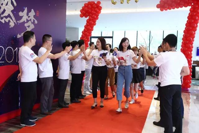 红毯已经铺就,鲜花吐露芬芳,英姿勃发的旭辉高管们等候在红毯两侧,以击掌的形式欢迎精神抖擞的旭辉伙伴们入场!