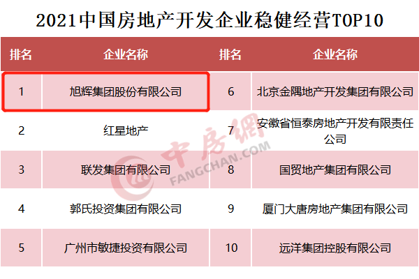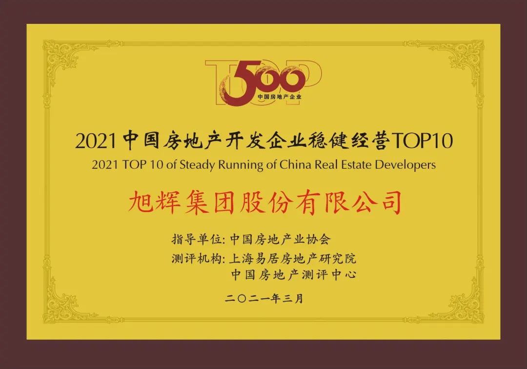 旭辉蝉联“2021中国房地产开发企业稳健经营TOP10”第1位