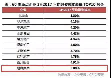 位居克而瑞2017上半年165家房企持有现金TOP20,60家房企现金短债比最高TOP10,60家重点企业1H2017平均融资成本最低TOP10。旭辉凭借的是什么?