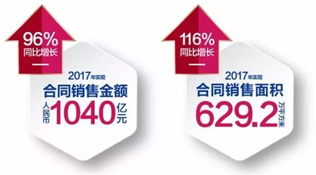 3月14日,旭辉发布2017年度业绩报告,销售额、净利润、全国化布局等多个维度全面提升,尤其是在销售额方面,全年业绩同比增加96%,实现合同销售金额1040亿元,荣耀成为“千亿军团”中的一员。