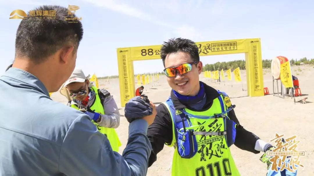 顶住戈壁的高温酷暑、抗住身体的疼痛煎熬,在团队力量的坚守下,旭辉“沙漠鱼”们熬出了88公里的伟大,造就了一个更加团结、更有凝聚力的团队。