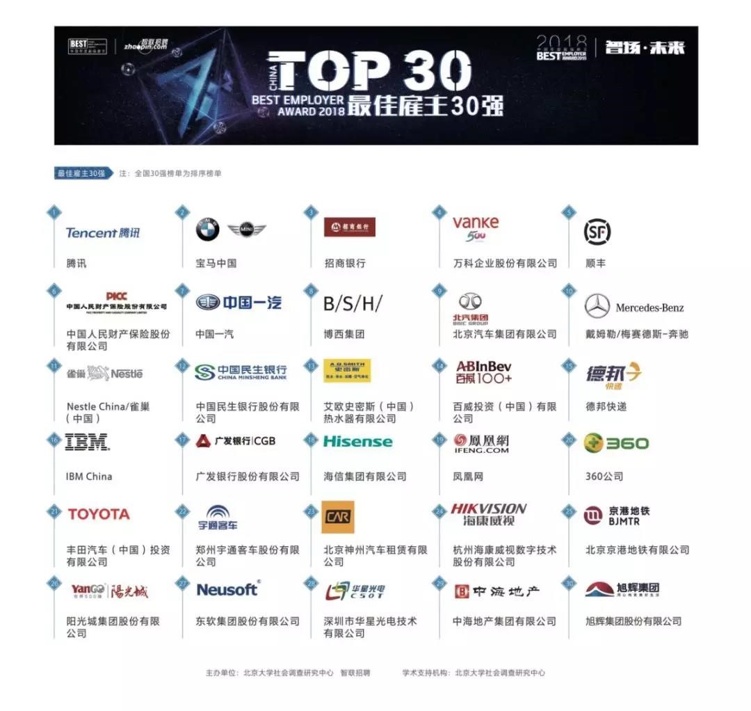 由智联招聘联合北京大学社会调查研究中心共同发起的“中国年度最佳雇主”评选活动始于2005年,旨在以独立客观的立场,通过专业科学的调查和评选,为求职者提供“好雇主”、“好工作”的有效参考,为企业制定雇主品牌战略提供数据支持,实现雇主与雇员的“双赢”。