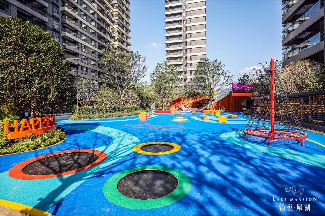 铂悦·犀湖秉承CIFI-5全龄设计理念,将儿童娱乐区域划分为不同的模块,让各个年龄段的孩子都能在自家门口获得开心快乐,包括:为0-3岁的婴幼打造了以低、平、基础为主的游戏场地和设施,配以成人看护休憩区域和可供哺乳、更换尿布的私密母婴室,让家长可以安心陪伴婴儿认知周围世界;针对3-12岁的儿童,打造出略高陡的游戏场地,有攀岩墙、蹦床、爬网、吊桥、滑梯等,让孩子在游戏中学会合作互动、培养友情;另外针对喜爱探索的青少年孩童,打造轮滑场地、爬桶、哈哈镜等专属活动区域,让孩子们尽情释放蓬勃朝气。