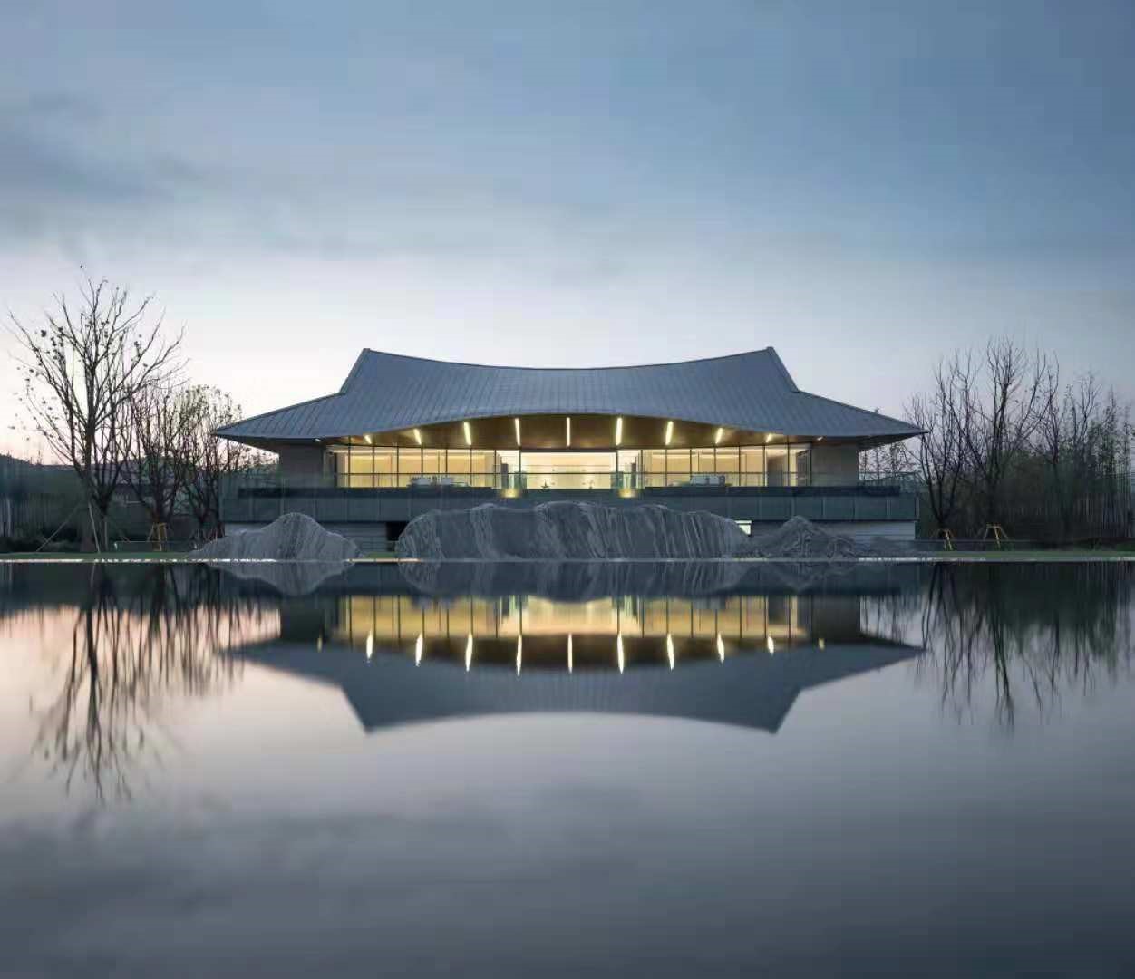 不同于传统项目的门第气势磅礴,雁归来院在最初设计时就期望它的气韵同江南的文人雅士一般,是谦逊温婉的,所以行走其中既能感受到隐约中不时出现的中式别院味道又有现代美学的简约格调。曲化的歇山屋面,回应着独特的东方建筑语言,核心精神是屋顶下的灰空间,开放通透形成一处与自然对话的场所;悬挑的景观露台,表达出极简的现代设计手段。从体块关系到建造细节,每一处都基于使用者的角度来考量。在建筑外立面的材料表达上,设计采用了石材、真石漆、铝板、金属漆等相结合的处理手法,形成了江南建筑所特有的“黑白灰”色彩美学。同时在单一色彩的表达上,采用多样的肌理处理方式,述说着不同的记忆与脉络。