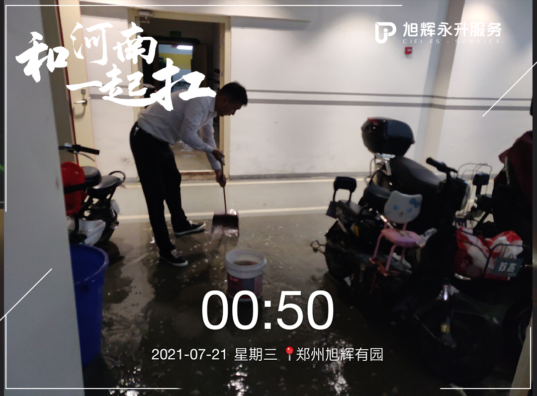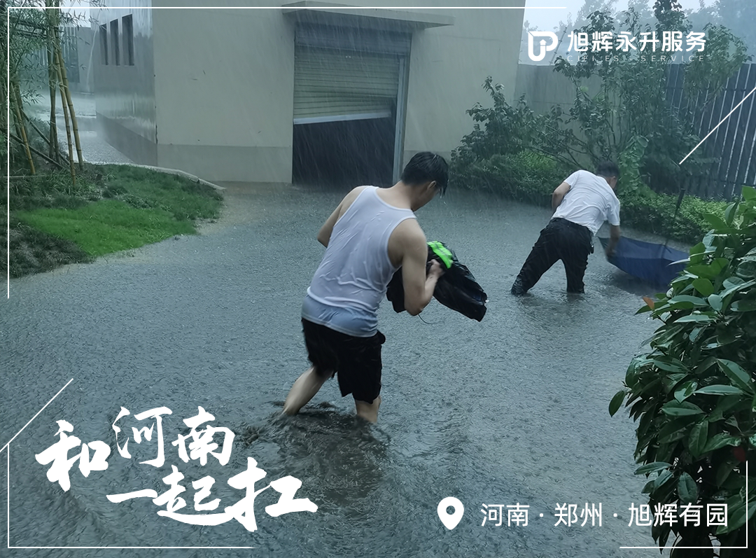 与此同时,旭辉永升服务正奋斗在抗洪第一线,用点滴行动,护业主安全!